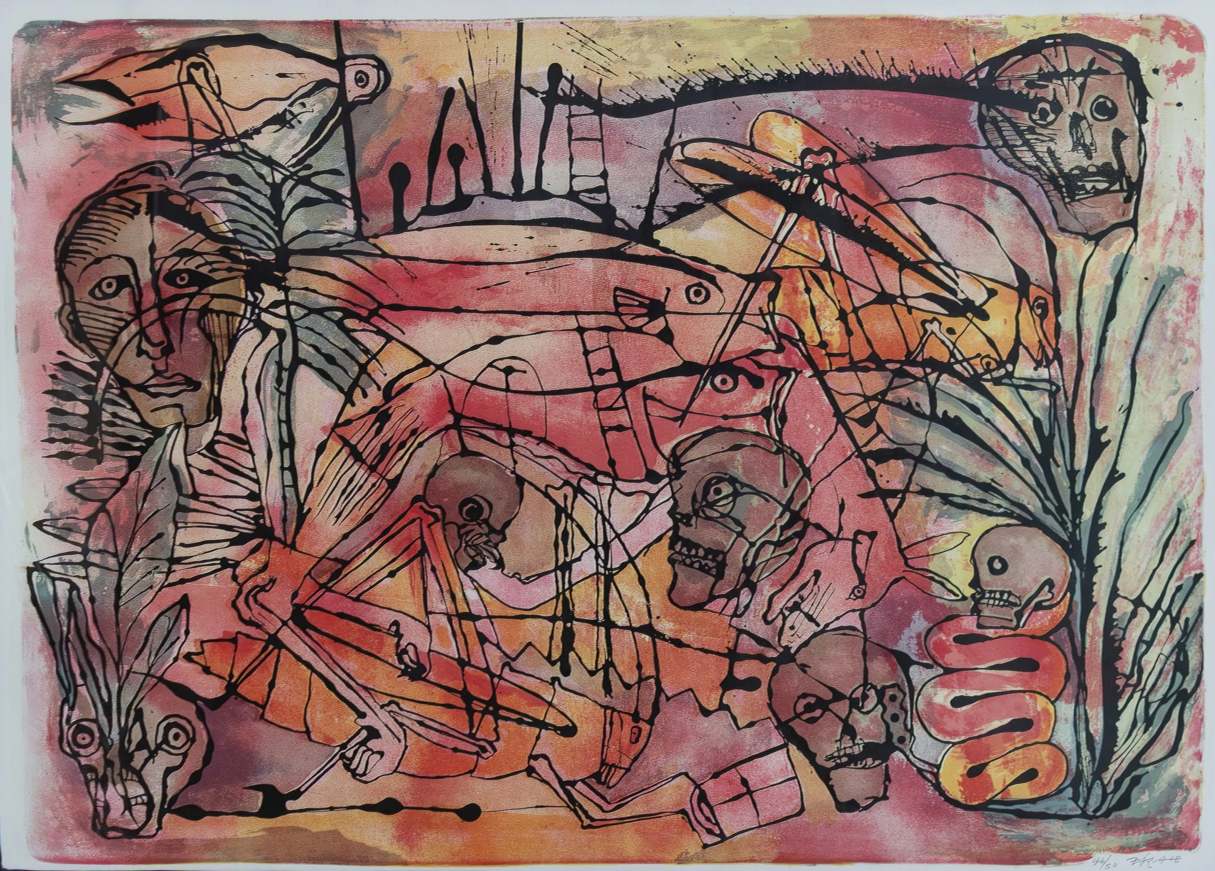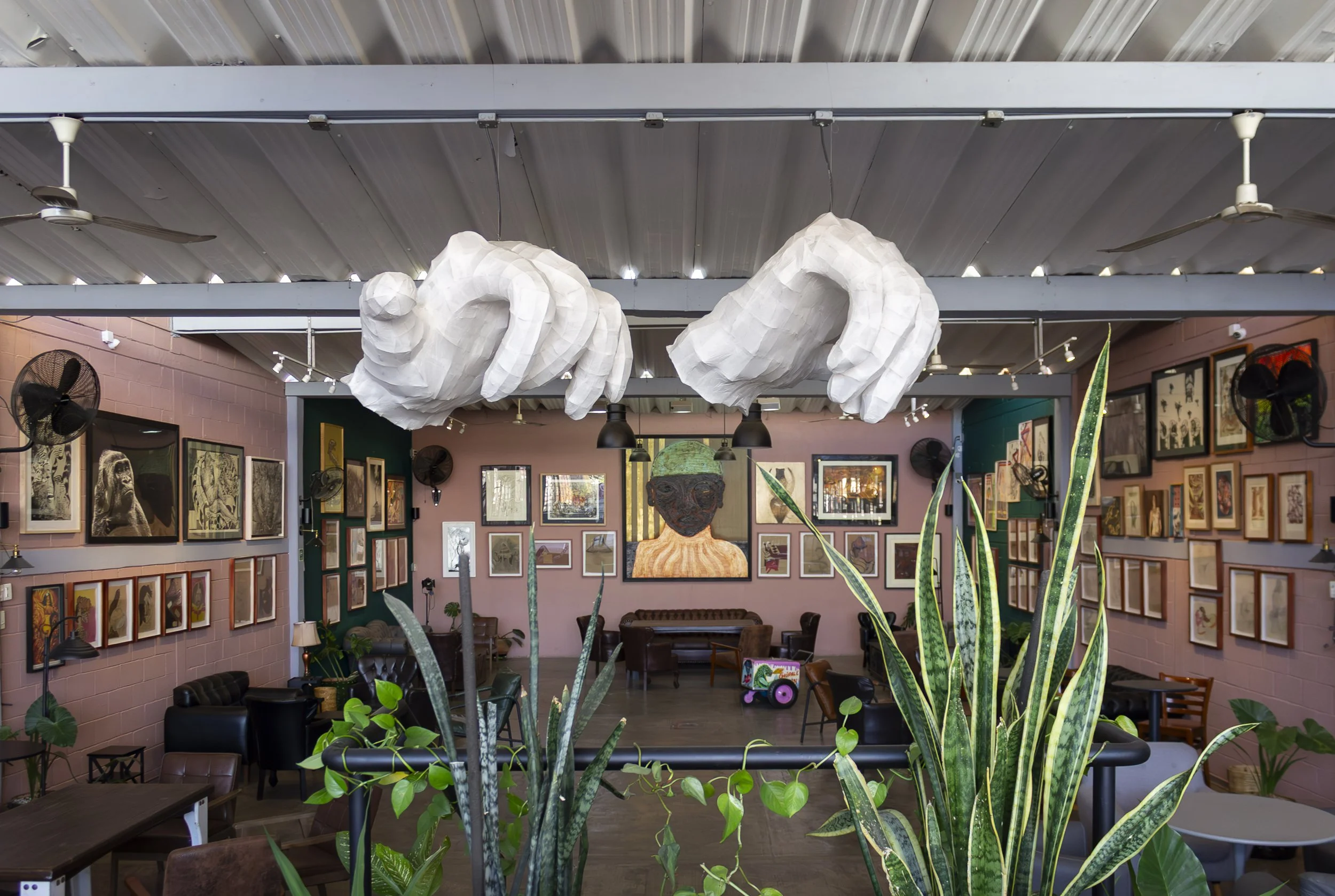 Este archivo tiene su origen en el restaurante La Popular, el primero de nuestro grupo. Ahí, desde el inicio, se fue construyendo una relación directa con artistas cercanos al espacio: amigos que intercambiaban obra por comida y bebida, en una dinámica cotidiana que poco a poco comenzó a reunir las primeras piezas de la colección.