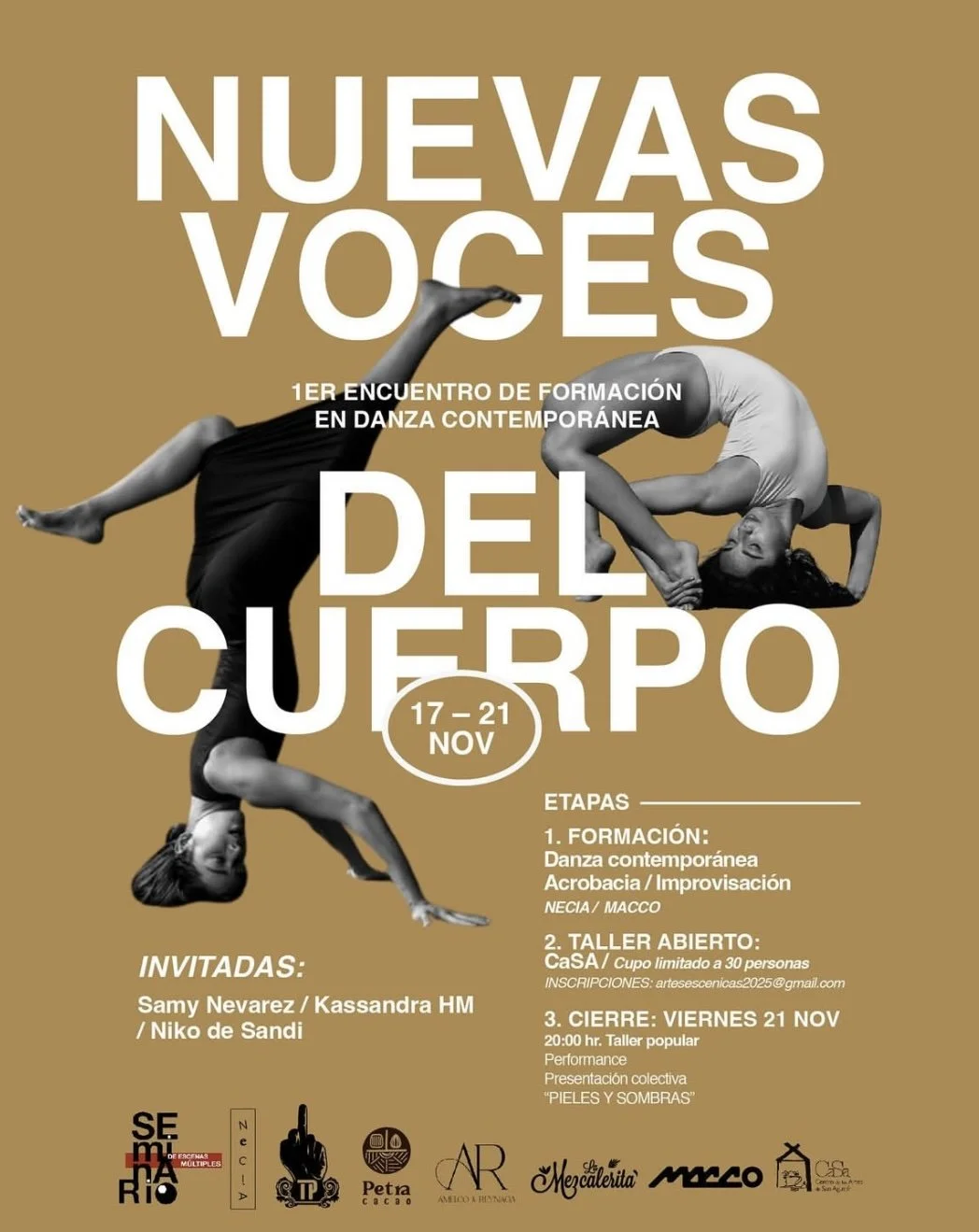 Como cierre del encuentro de danza contemporánea Voces del Cuerpo, Taller Popular fue sede de Pieles y Sombras, una presentación colectiva que reunió a intérpretes y creadoras vinculadas a la exploración del movimiento, la memoria física y la presencia escénica.